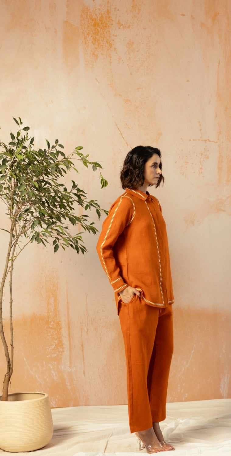 This Rust Cotton Linen Co-Ord Set is crafted for women who love looking polished without trying too hard. Designed in our signature comfort-fit silhouette, it drapes beautifully, feels incredibly soft on the skin, and moves with you from morning errands to evening plans.